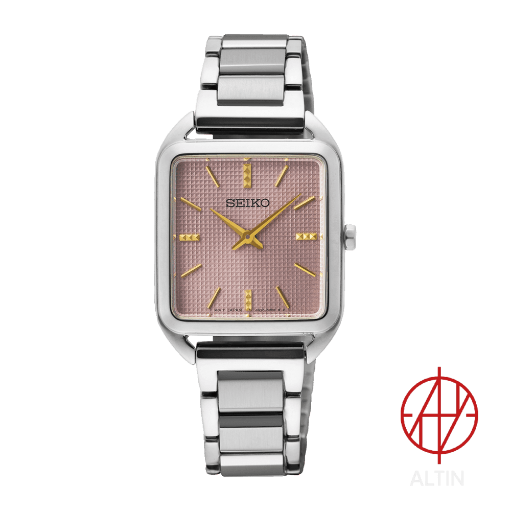 ساعت Seiko SWR077P1 یک مدل زنانه از سری Essentials برند ژاپنی سیکو است که طراحی ظریف و شیک را با عملکرد دقیق و کیفیت ساخت بالا ترکیب کرده است. این ساعت با ظاهری کلاسیک و صفحه صورتی ملایم، انتخابی عالی برای استایل روزمره، رسمی و مهمانیهای خاص است.