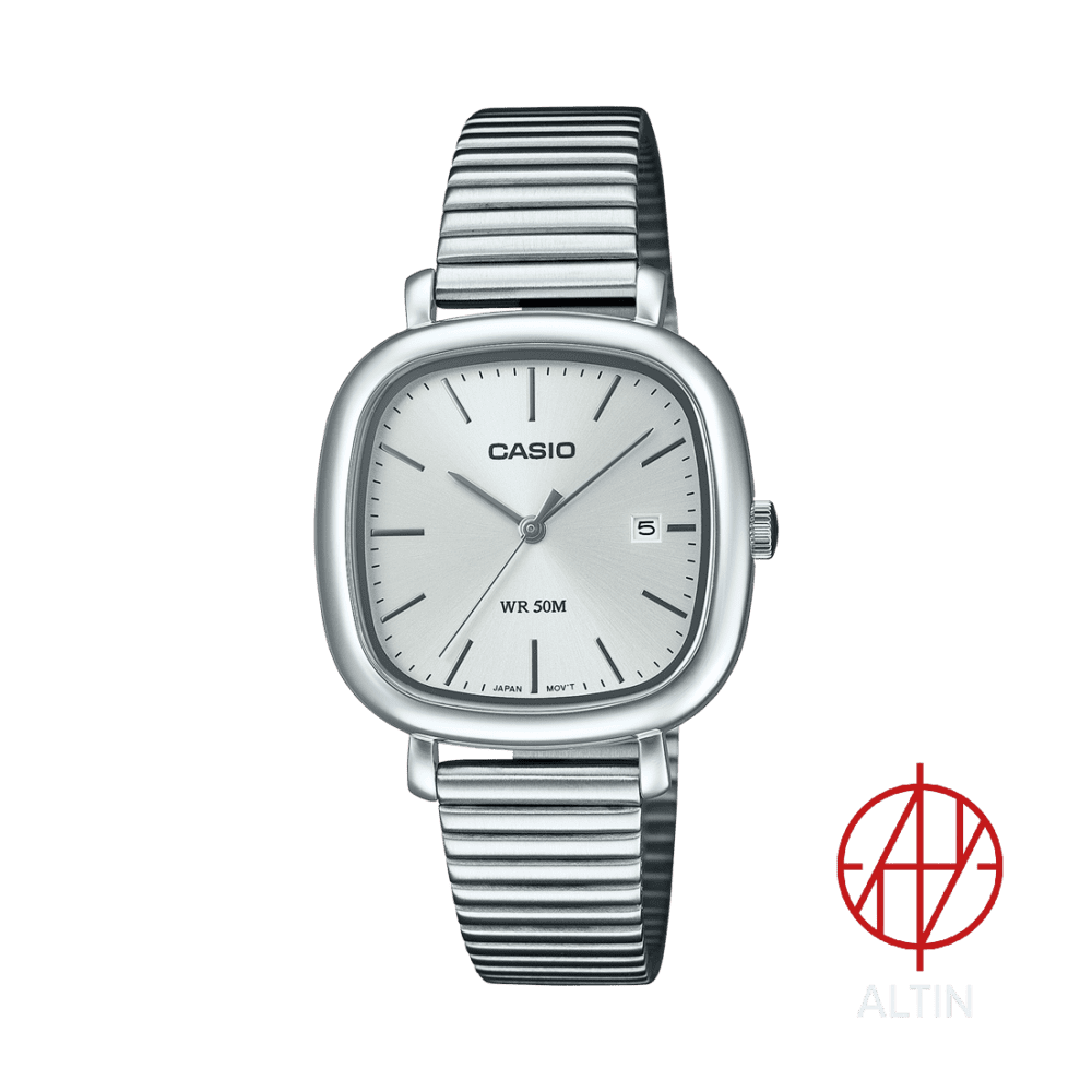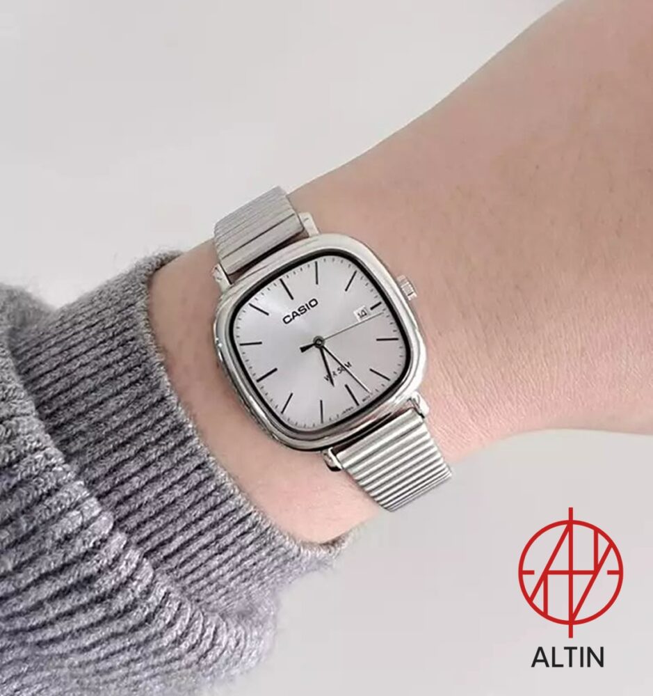 🔹 نمایشگر: صفحه نقرهای روشن (Silver dial) که ظاهر کلاسیک و همهپسندی دارد