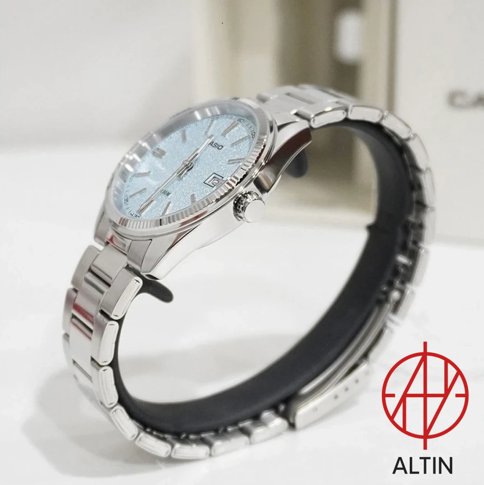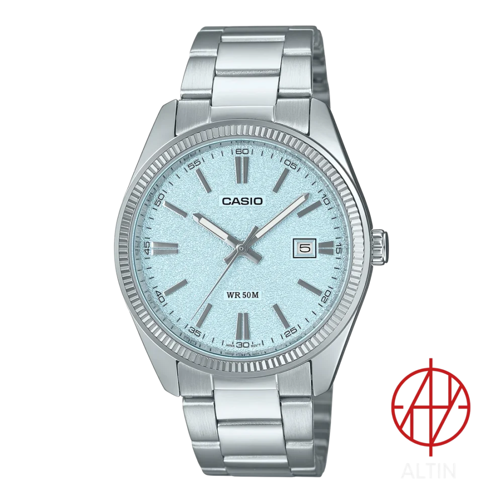 ساعت مچی کاسیو مدل MTP-1302DA-2A2VDF یک پدیده در دنیای ساعتهای اقتصادی است. جذابیت اصلی این مدل، رنگ صفحه خیرهکننده آن است که بسته به نور محیط، طیفی از آبی آسمانی تا فیروزهای روشن را نمایش میدهد. بدنه و بند این ساعت از استیل ضد زنگ و ضد حساسیت ساخته شده و موتور کوارتز آن با دقت ±20 ثانیه در ماه کار میکند. قاب دندانهدار (Fluted) این مدل، درخشش ساعت را در شب دوچندان میکند و حسی کاملاً کلاسیک و “اولد مانی” (Old Money Style) به استایل شما میبخشد.